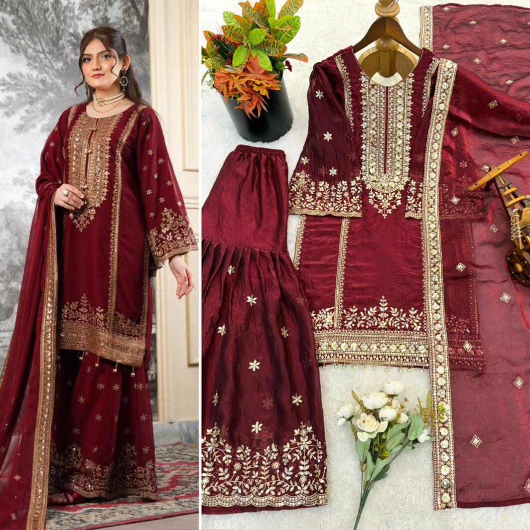 New Bollywood wardrobe team fendy silk sharara suit with sequin embroidery work