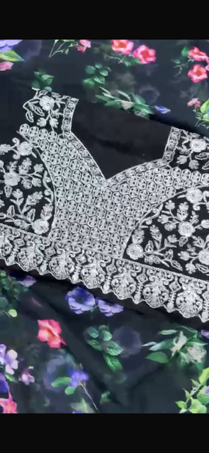 New bollywood wardrobe team georgette floral digital printed saree with sequin, lace and cut work border