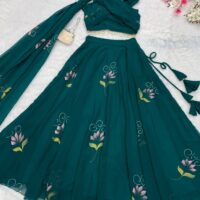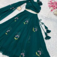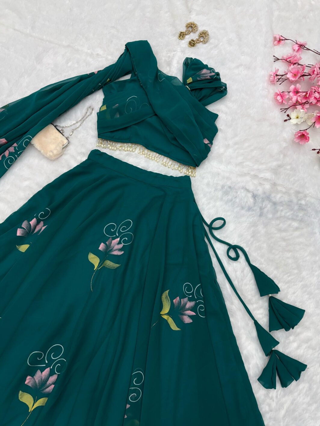 New Bollywood wardrobe team georgette ready made lehenga with hand print and attached draped dupatta
