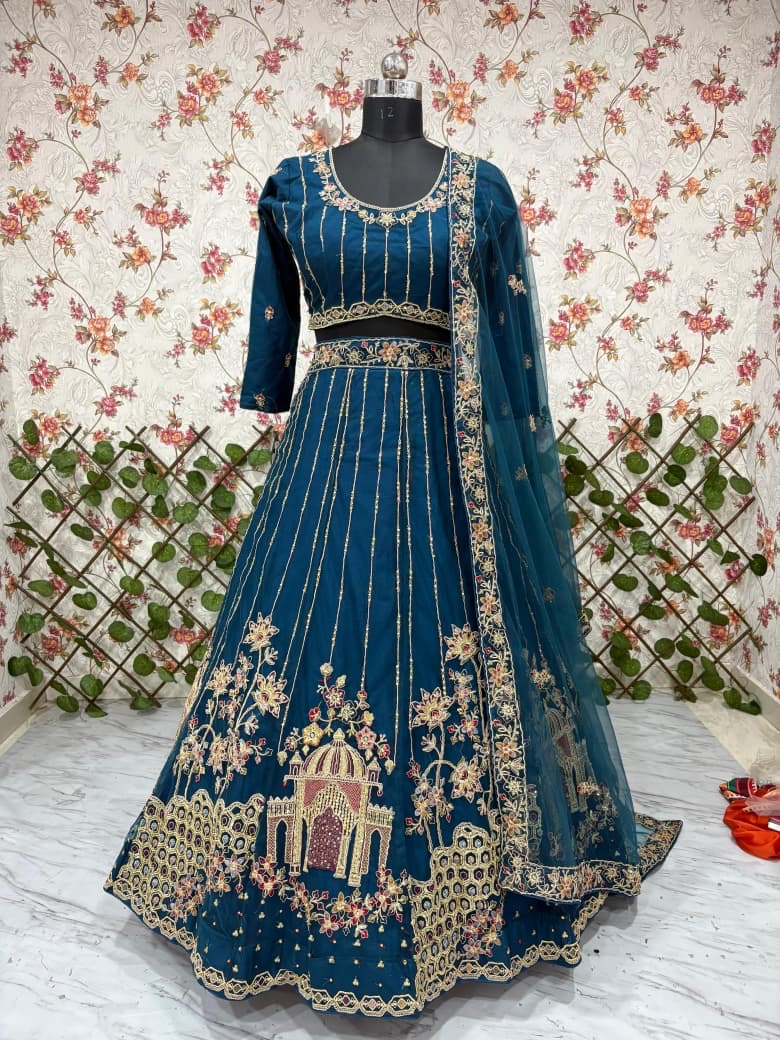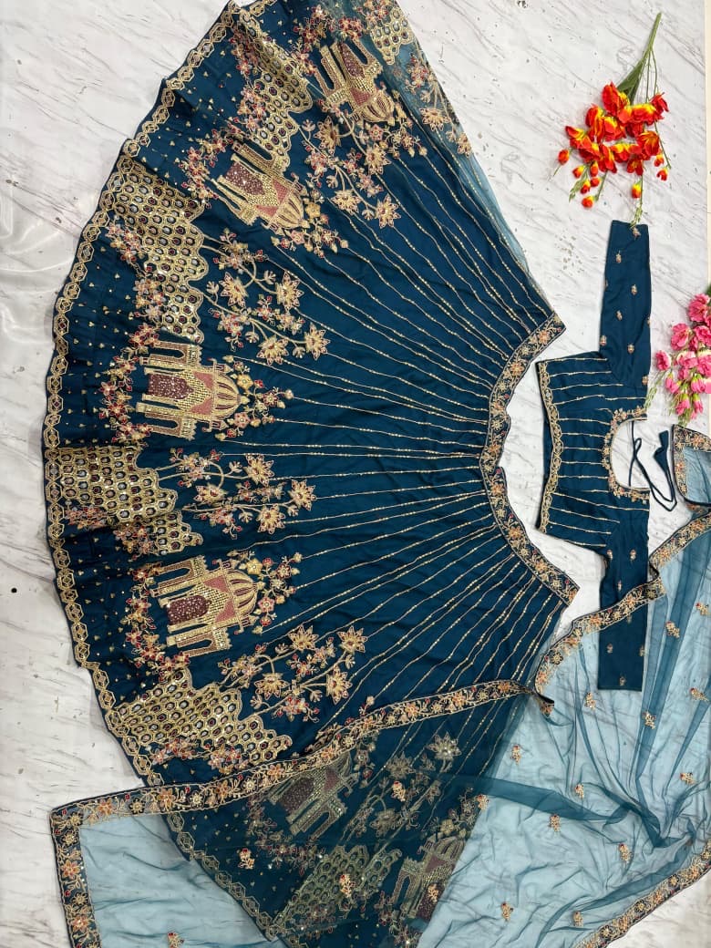 New Bollywood wardrobe team soft net lehenga with thread, dori and sequin embroidery work
