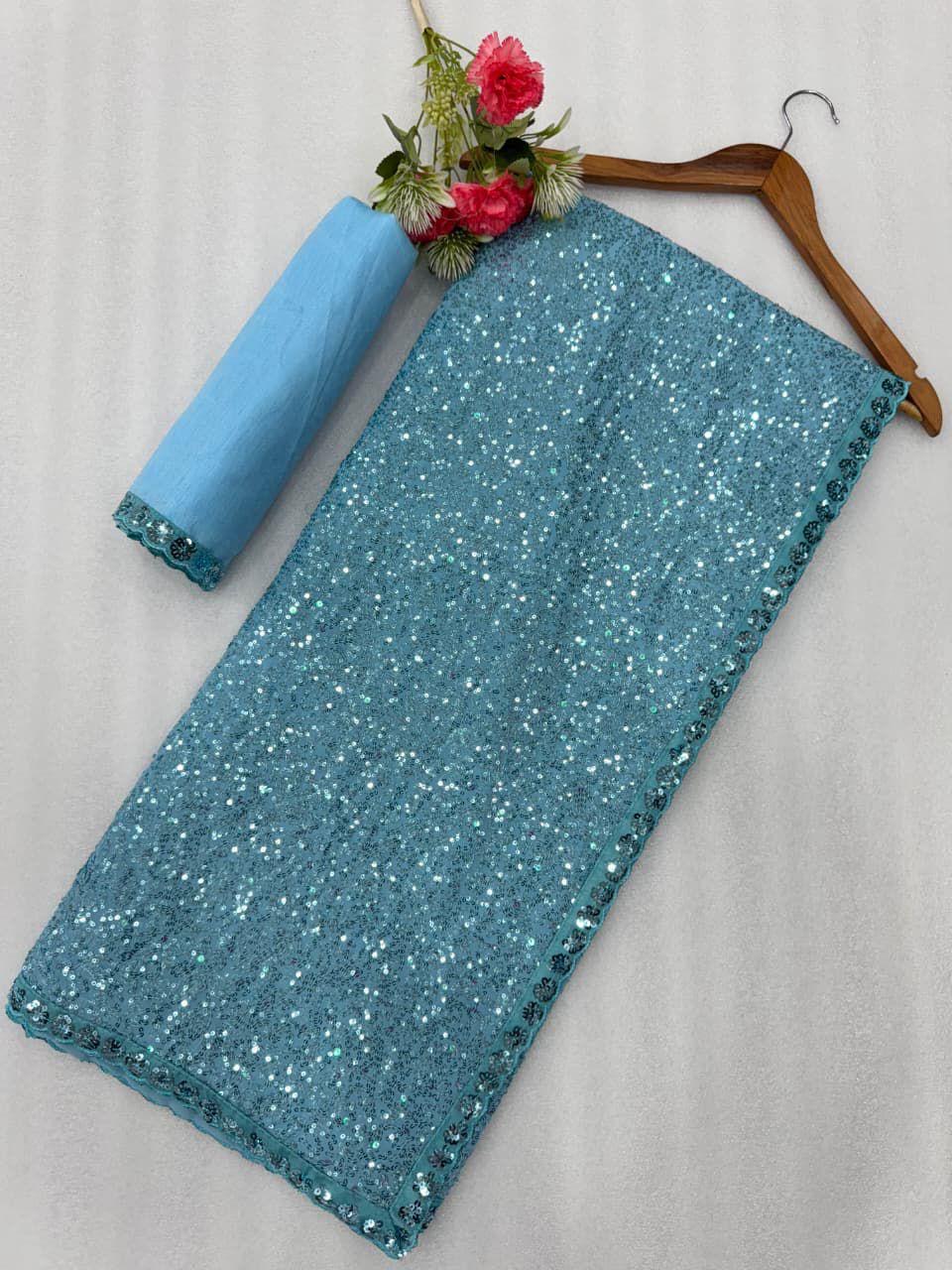 New bollywood wardrobe team georgette sequin saree