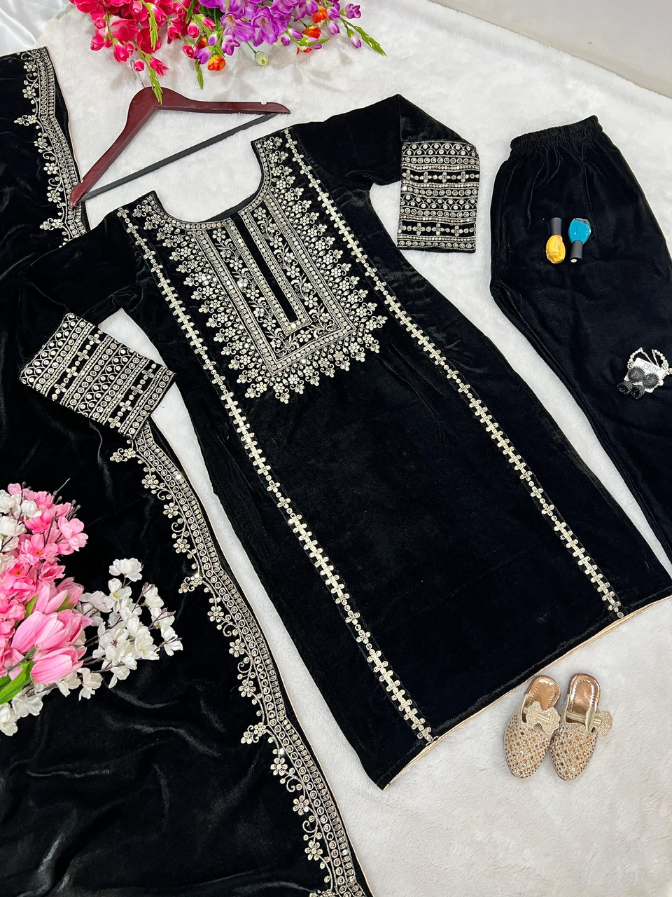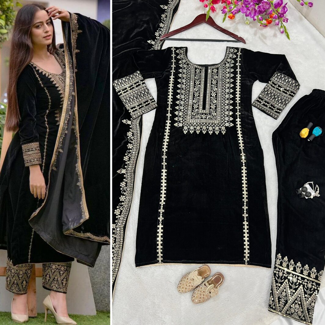 New Bollywood wardrobe team velvet ready made suit with sequin embroidery work