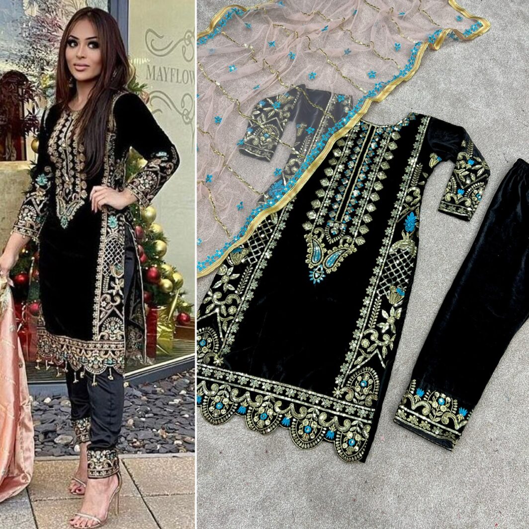 New Bollywood wardrobe team velvet ready made suit with sequin embroidery work