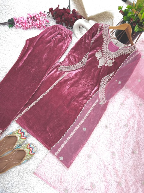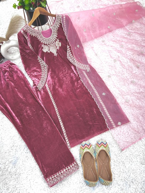 New Bollywood wardrobe team viscose velvet suit with sequin embroidery work