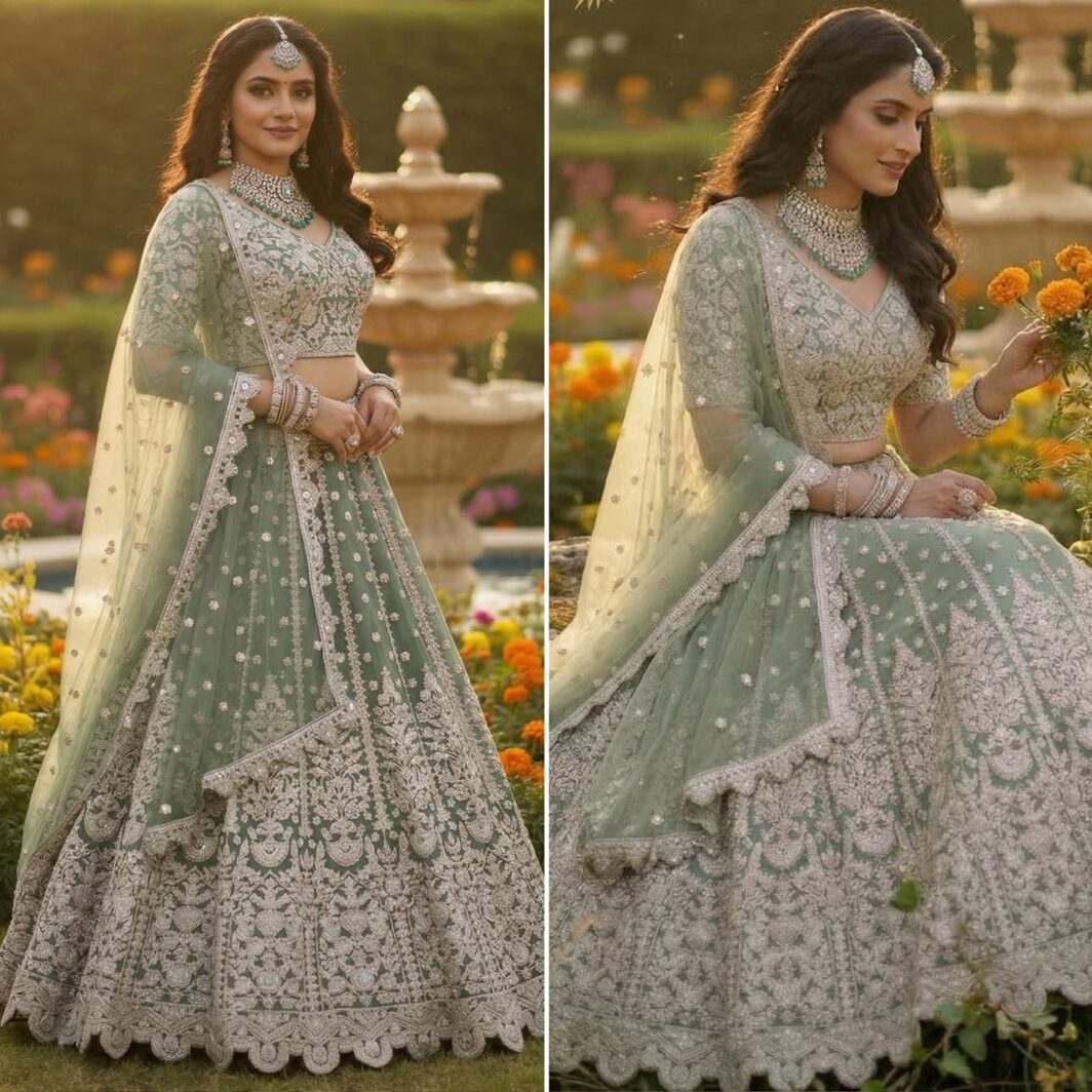 New designer butterfly net lehenga with fancy dori, sequin and diamonds work