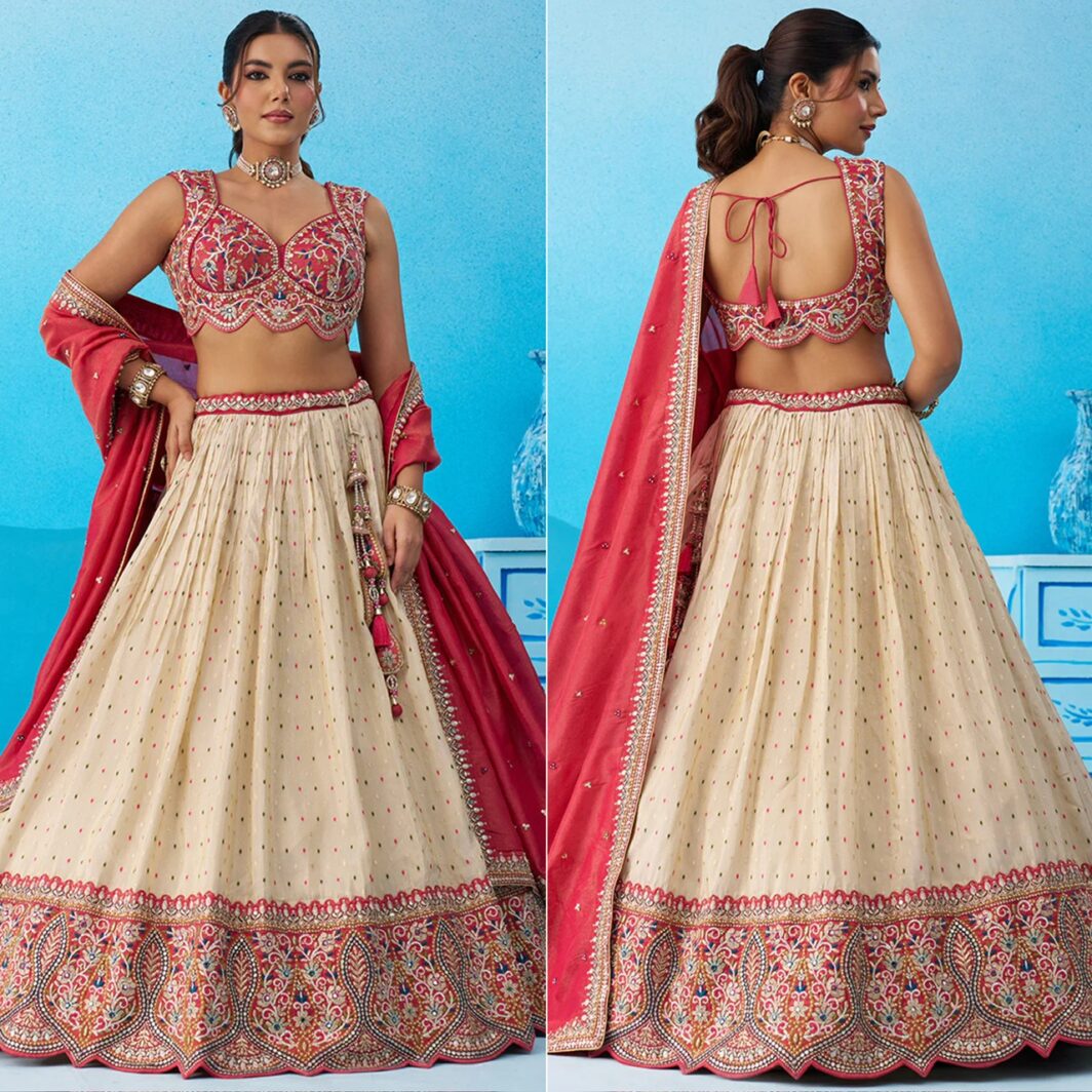 New designer jacquard tissue silk lehenga with sequin embroidery work