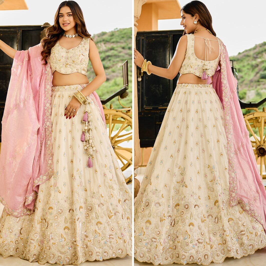 New designer tissue silk lehenga with sequin and bead embroidery work