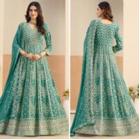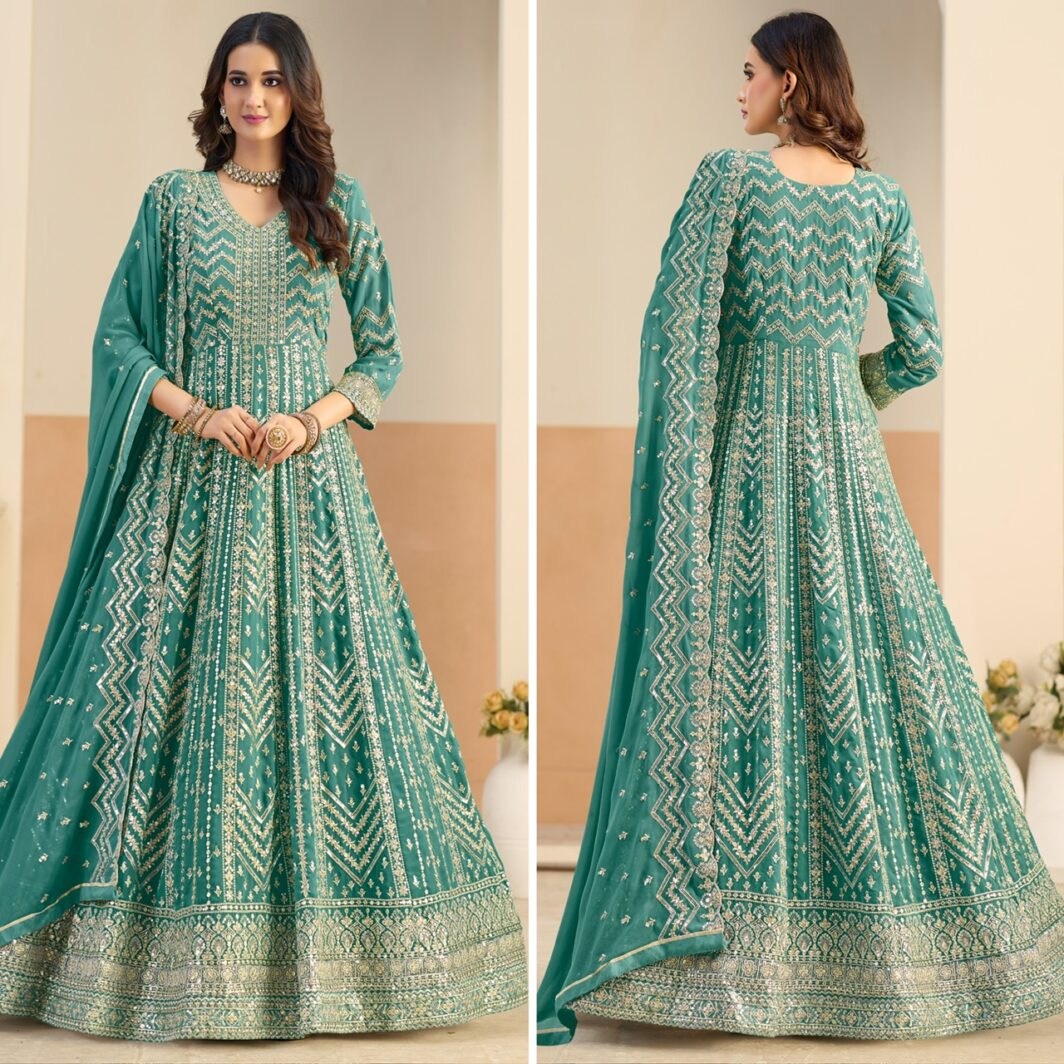 New designer georgette gown with thread and sequin embroidery work