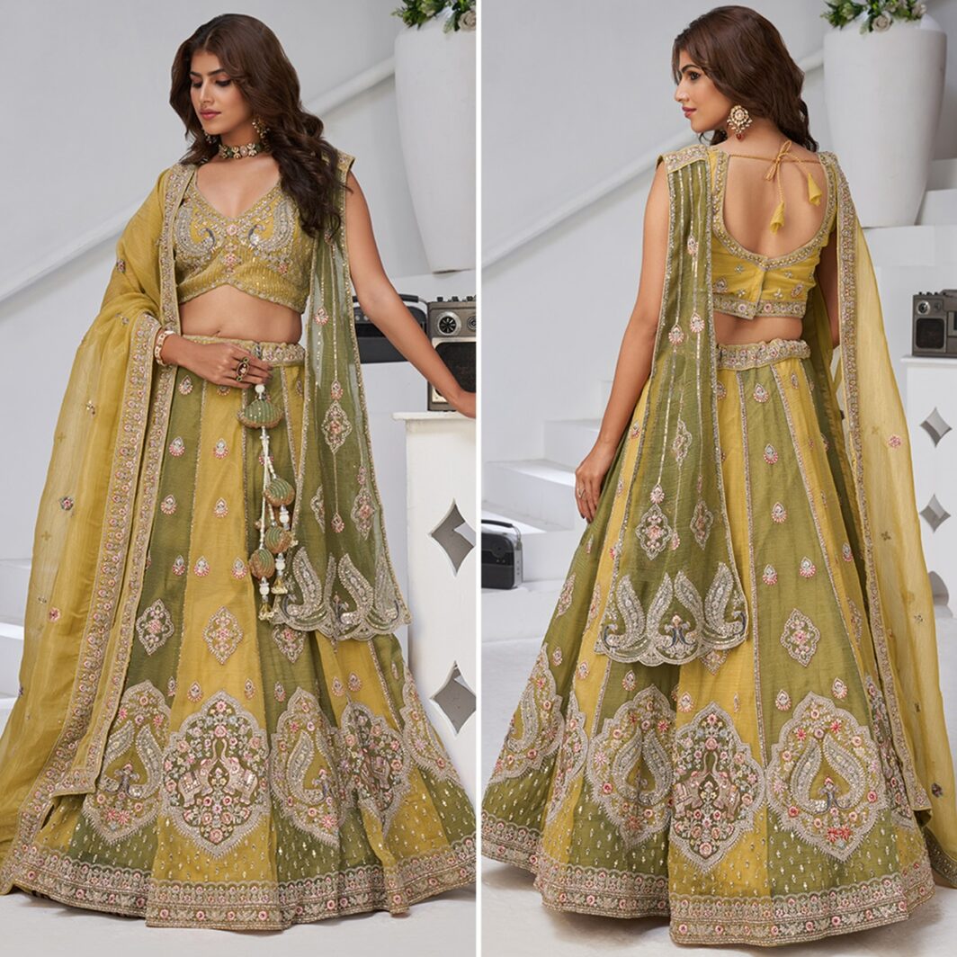 New premium range georgette tissue silk lehenga exquisitely crafted with intricate zari and resham embroidery