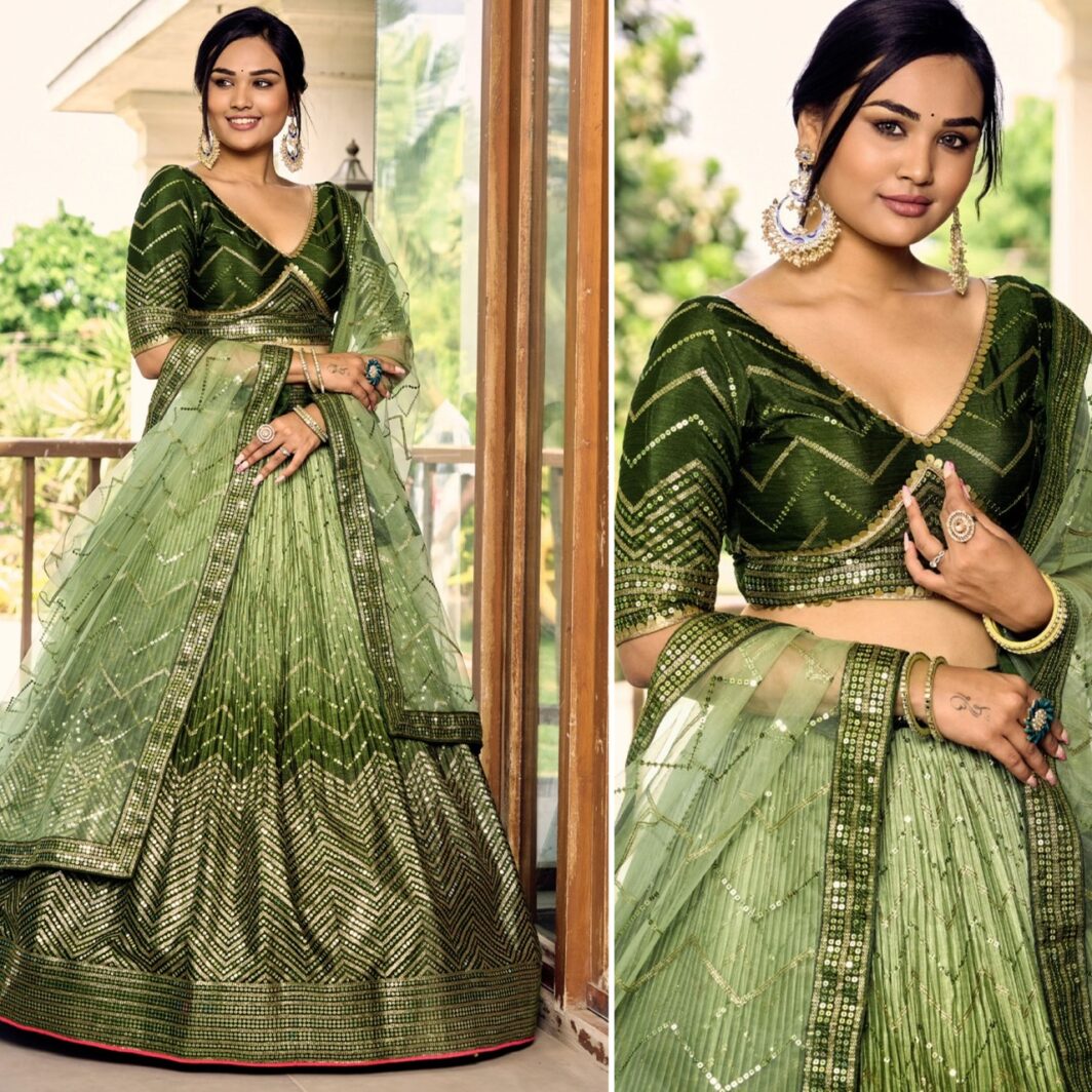 GREEN CHINON SILK LEHENGA PREORDER SPECIAL ZEE5057GRN