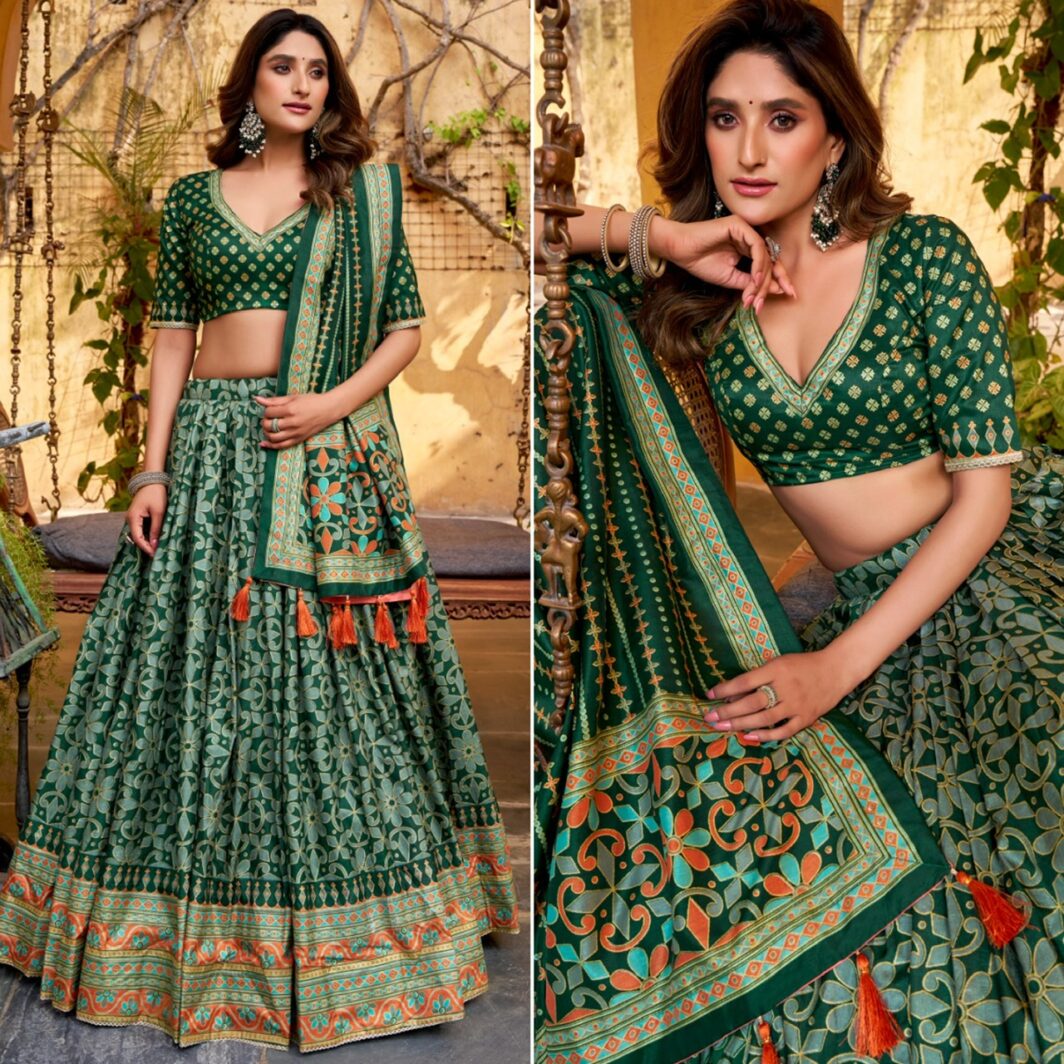 New designer soft tussar silk lehenga with lace border