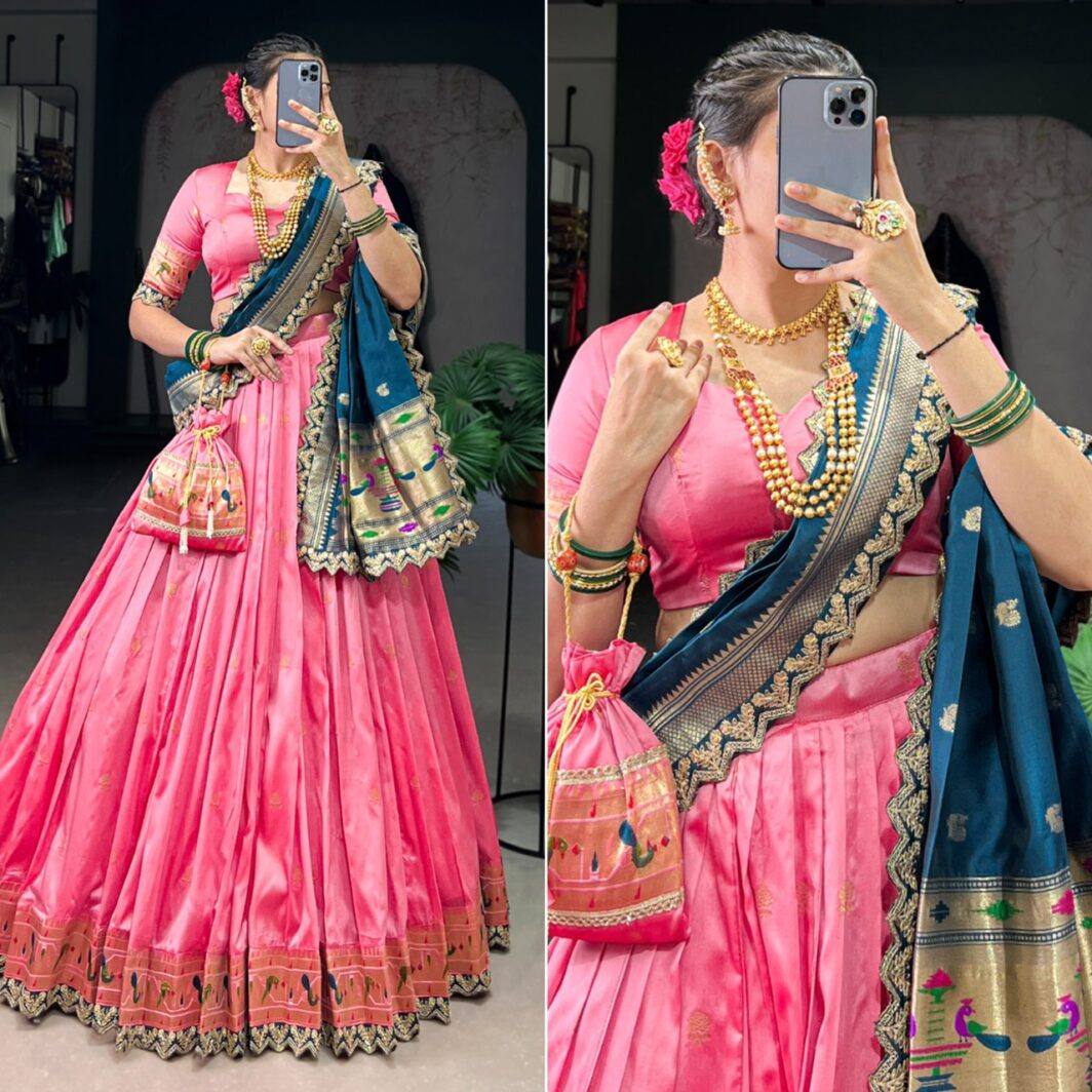 New designer paithani jacquard silk lehenga with zari sequin embroidery work on scallop lace border