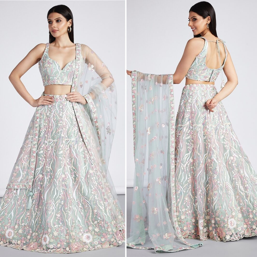 New designer soft net lehenga with sequin and thread embroidery work