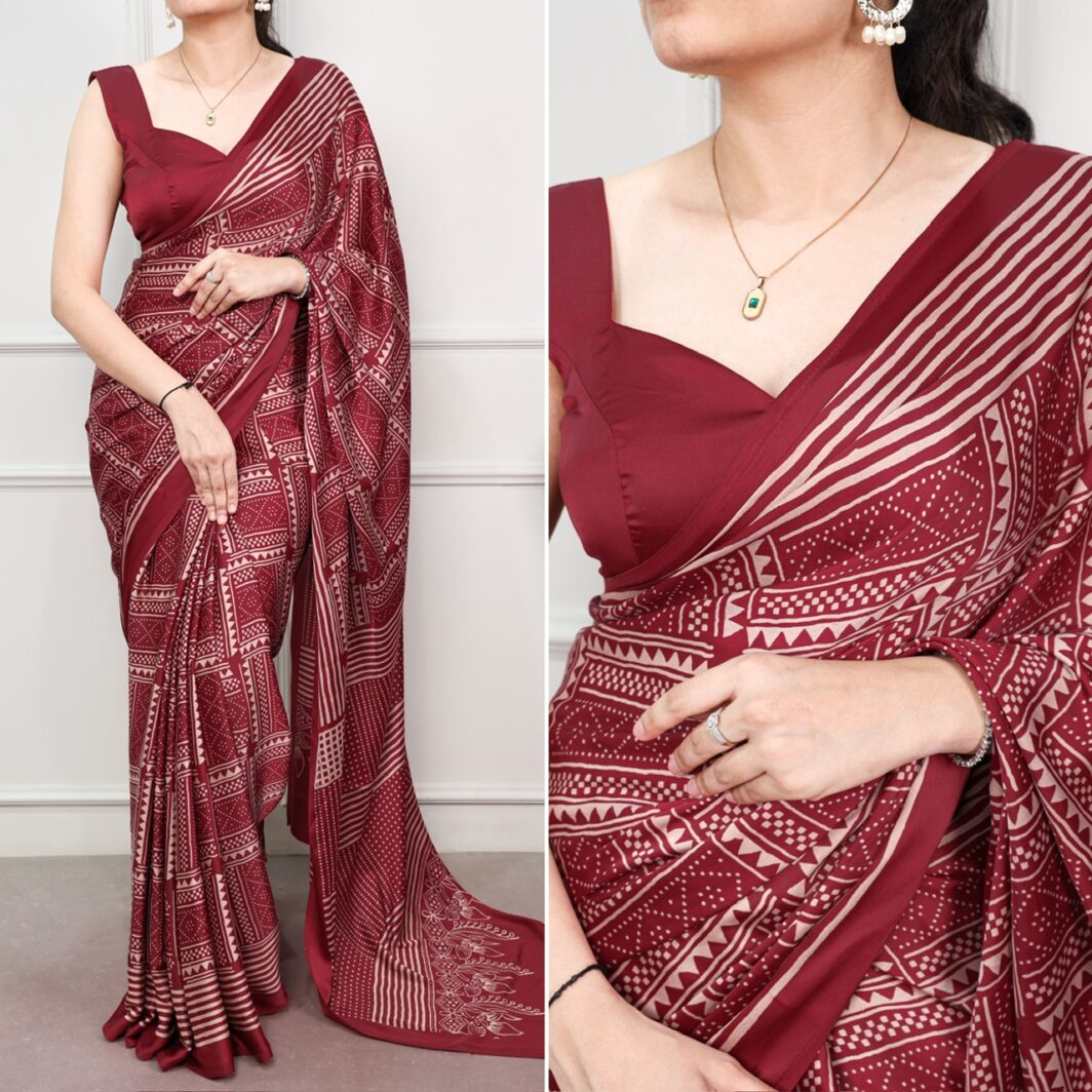 New satin silk digital printed saree