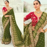 MEHENDI PURE DOLA VISCOSE SAREE WITH JARI THREAD MOTI & CUT-DANA HEAVY WORK