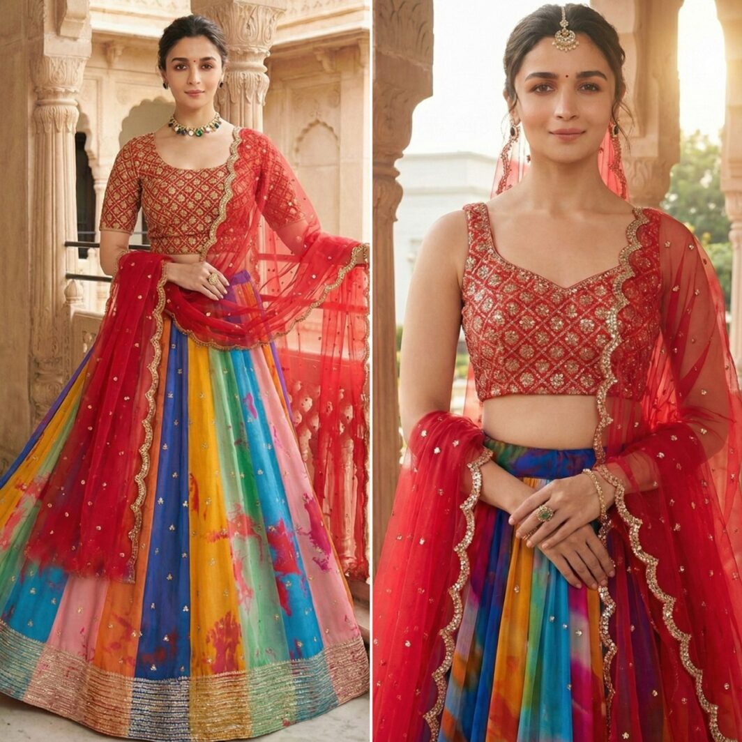 New designer georgette multi colour lehenga with sequin and thread embroidery work