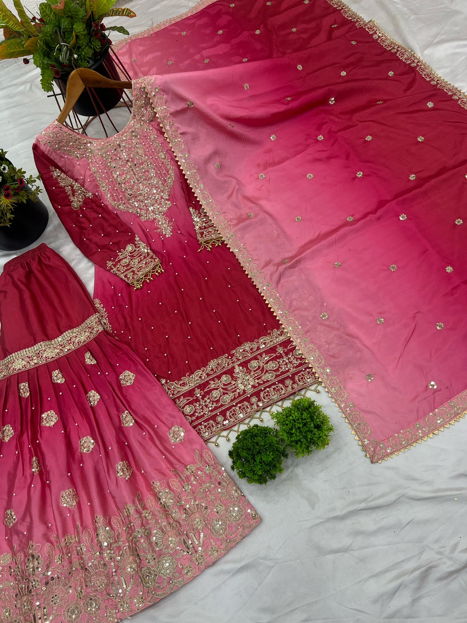 New Bollywood wardrobe team ready made chinon silk palazzo suit with sequin and coding embroidery work