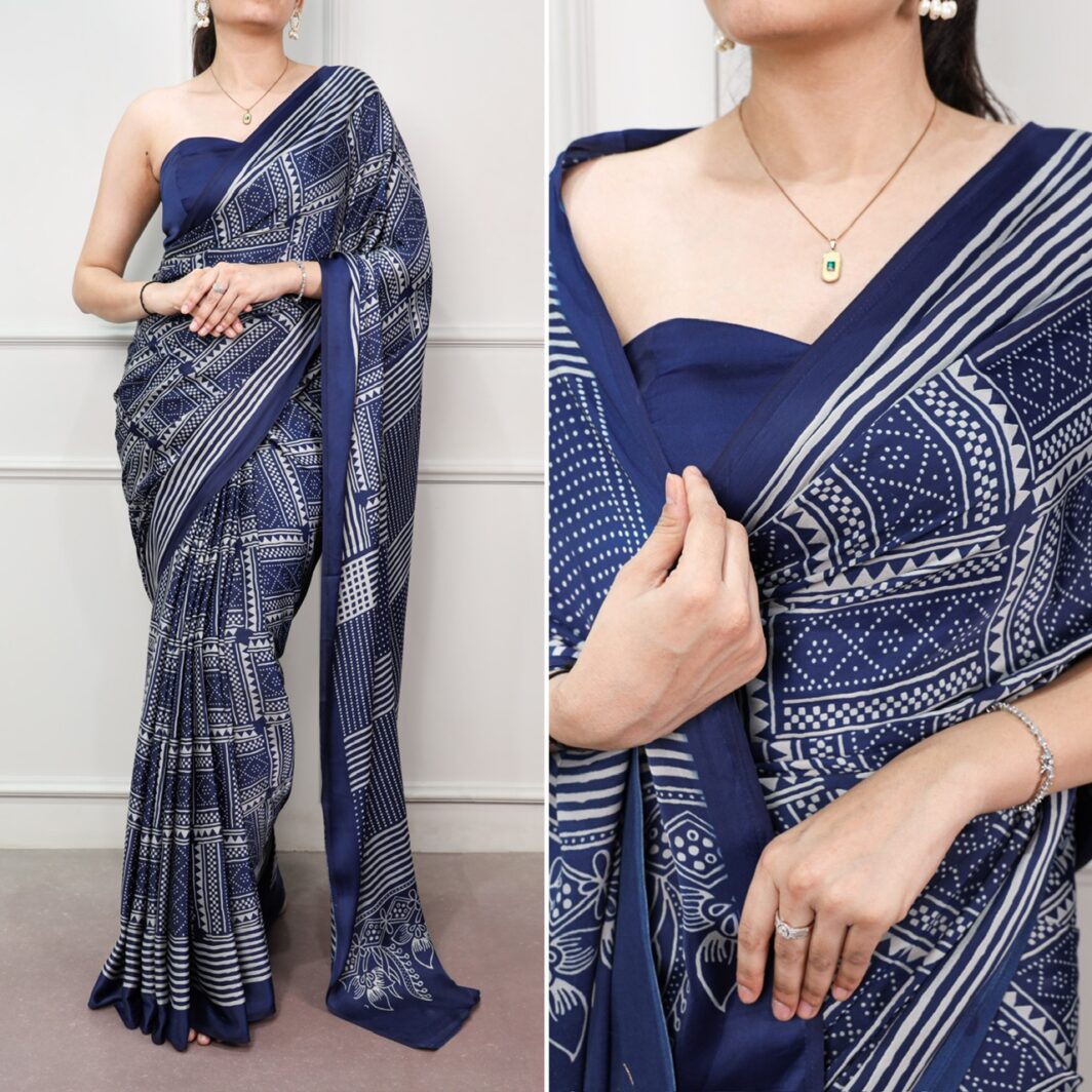 Be the first to review “NAVY BLUE SATIN SILK SAREE PREORDER SPECIAL LNB7215NBL”