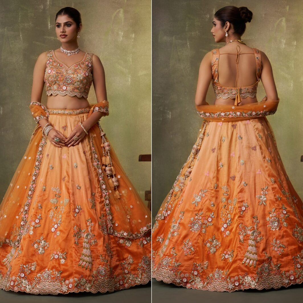 Be the first to review “ORANGE TISSUE SILK LEHENGA PREORDER SPECIAL HOP61462ONG”