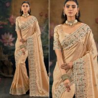 New pure kanjivaram silk saree with moti cut dana emerald heavy embroidery work