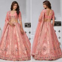 New premium range banarasi silk lehenga featuring exquisite peacock and paisley motifs crafted with intricate zari and resham embroidery