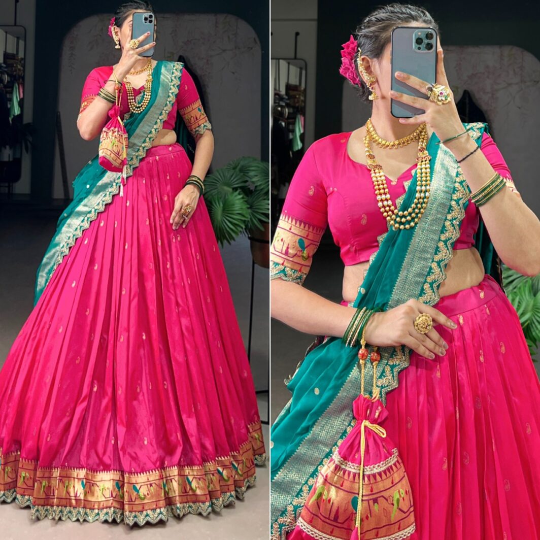 New designer paithani jacquard silk lehenga with zari sequin embroidery work on scallop lace border