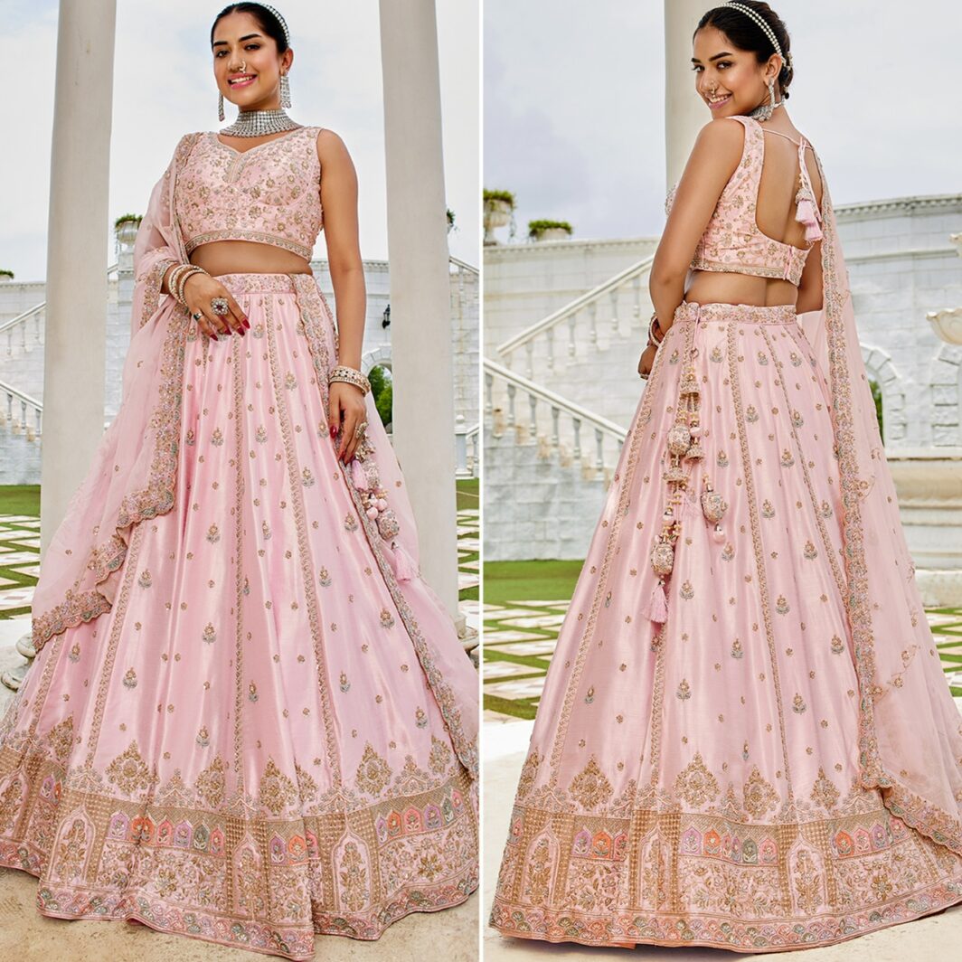 Skirt comes semi stitched max 42 inches waist and blouse unstitched