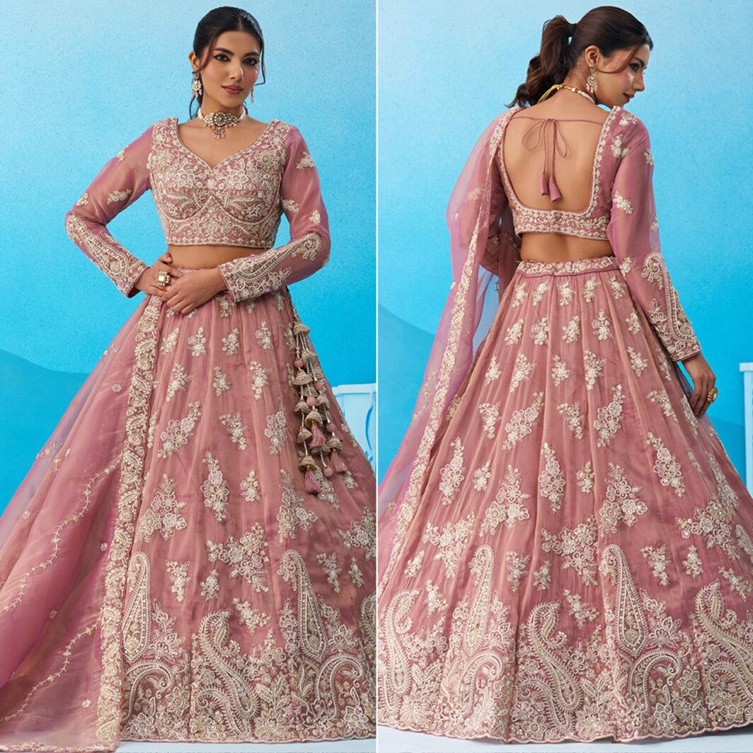PINK TISSUE SILK LEHENGA PREORDER SPECIAL HOP6223PNK