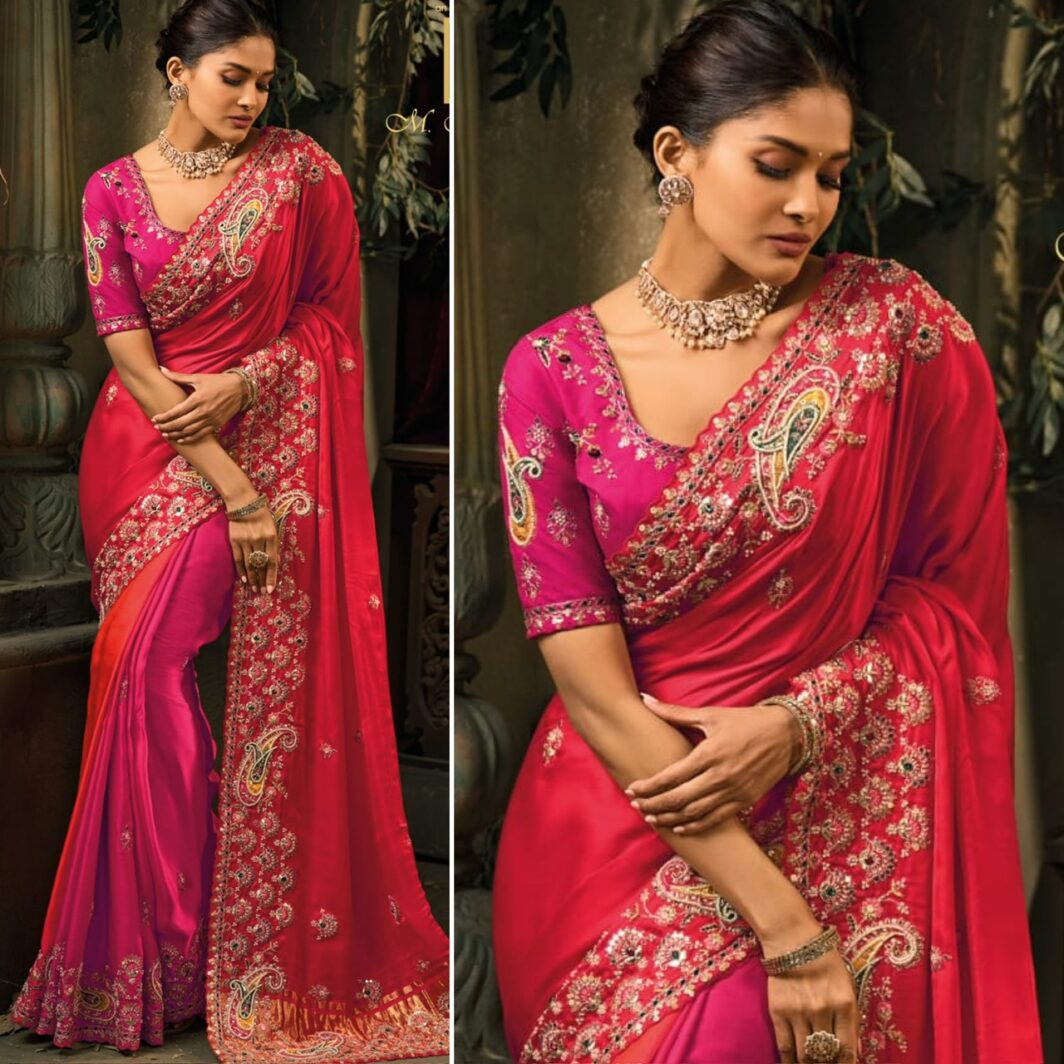 3DYEING PURE GAJJI SILK SAREE WITH JARI, THREAD,MOTI & EMERALD HEAVY WORK