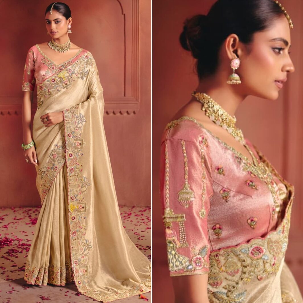 New designer pure zari silk saree with sequin, thread and weaving heavy embroidery work