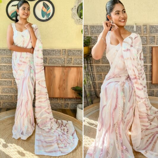 New designer premium soft net saree with sequin, thread and zarkan work