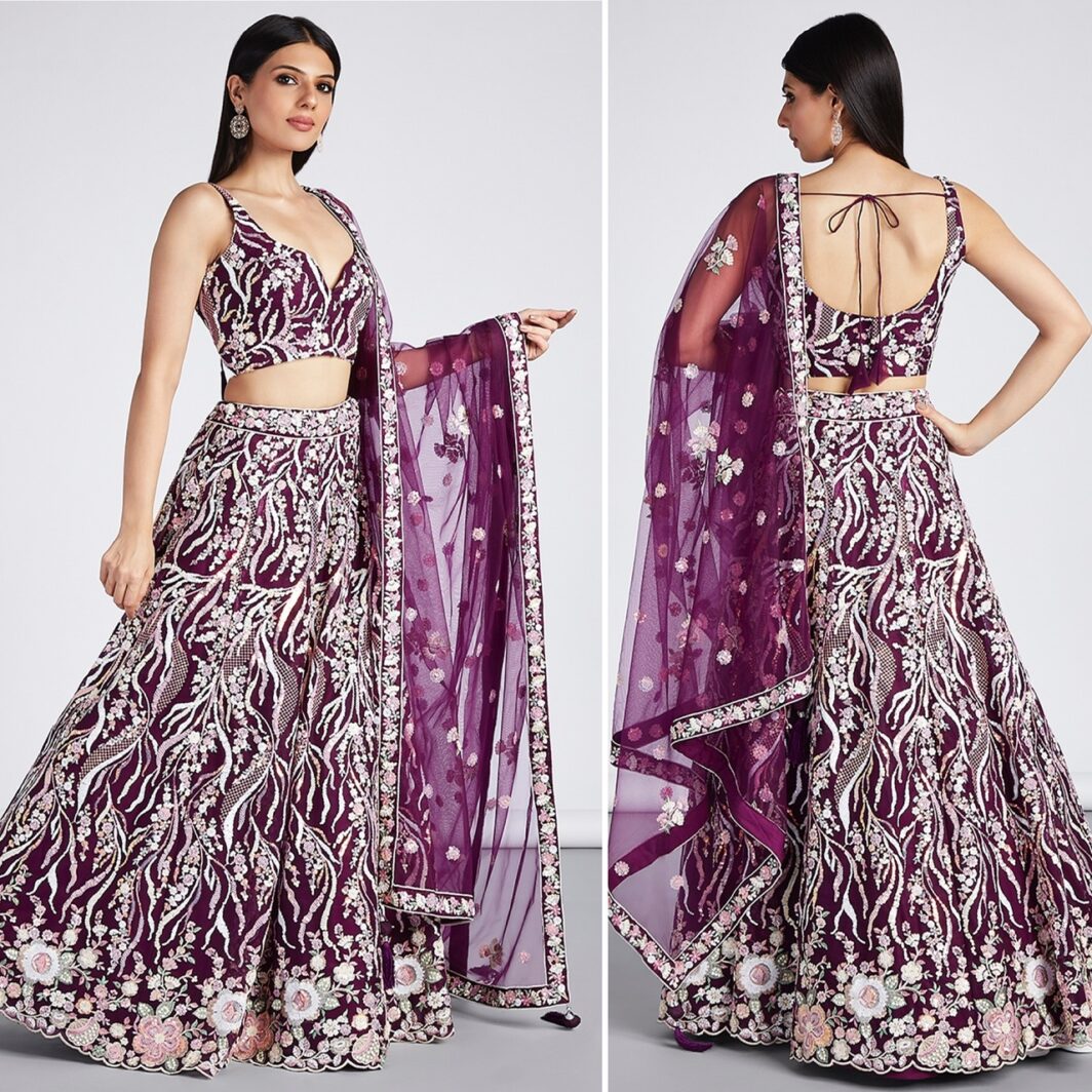 New designer soft net lehenga with thread and sequin embroidery work