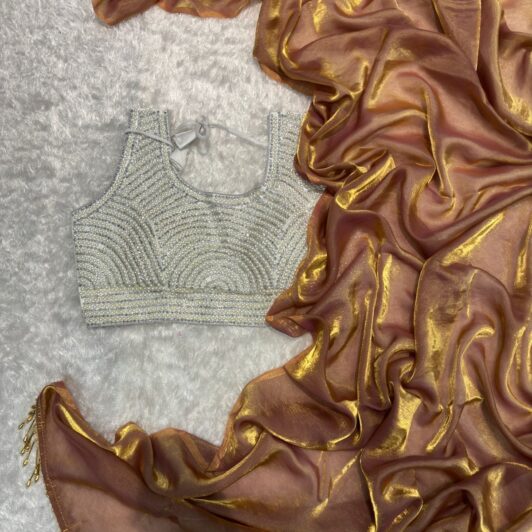 New bollywood wardrobe team georgette sarees with multi embroidery unstitched blouse