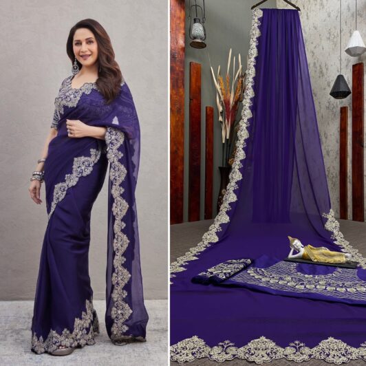 New Bollywood wardrobe team madhuri dixit georgette saree with coding sequin embroidery