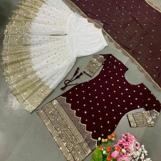 New premium range ready made smooth rajwadi silk lehenga with sparkle and aari mirror work