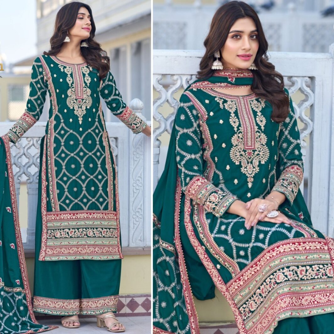 New designer chinon silk suit with embroidery work