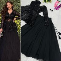 New Bollywood wardrobe team ready made georgette lehenga with butterfly net sequin top