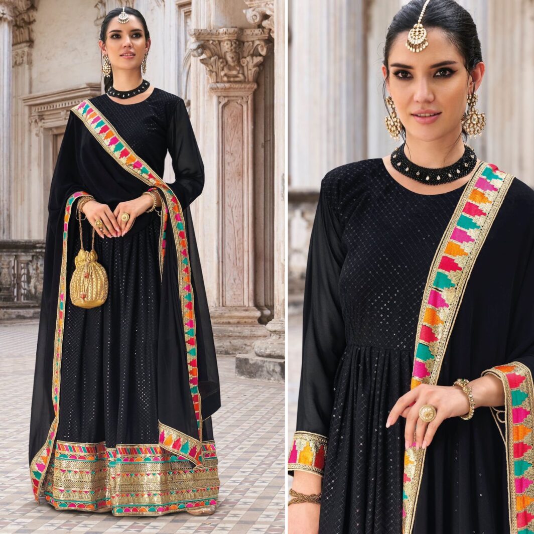 New designer semi stitched georgette gown sabyasachi style with sequin embroidery