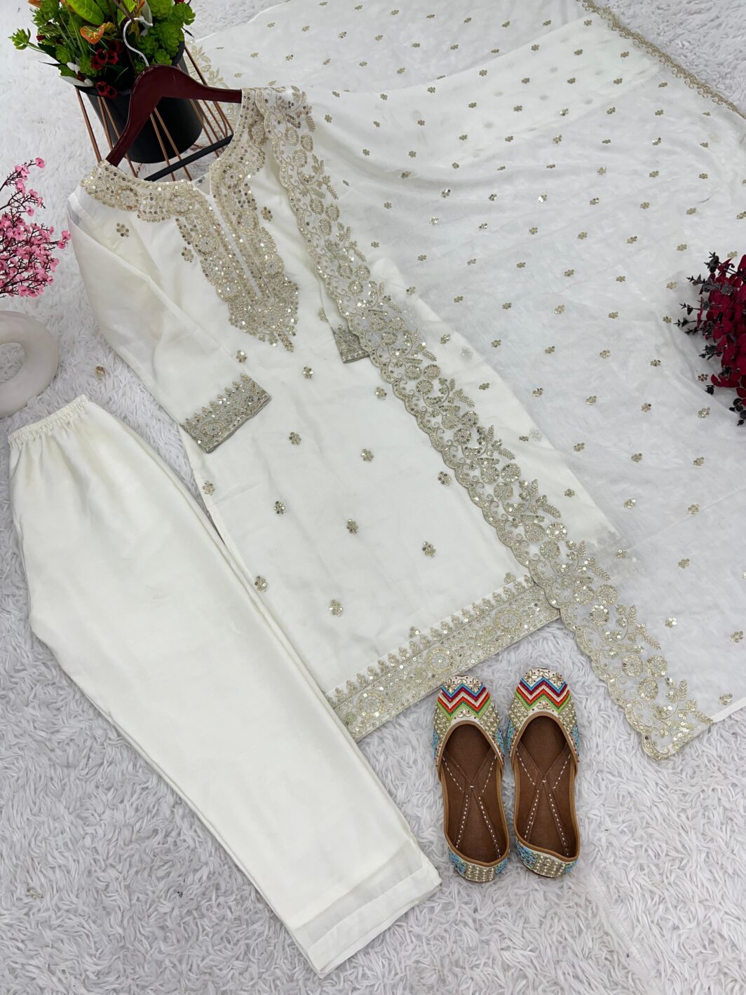 New Bollywood wardrobe team ready made chinon silk suit with sequin work