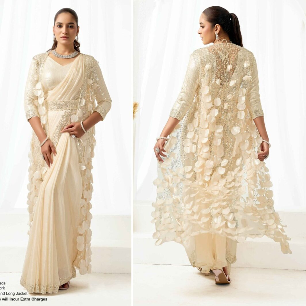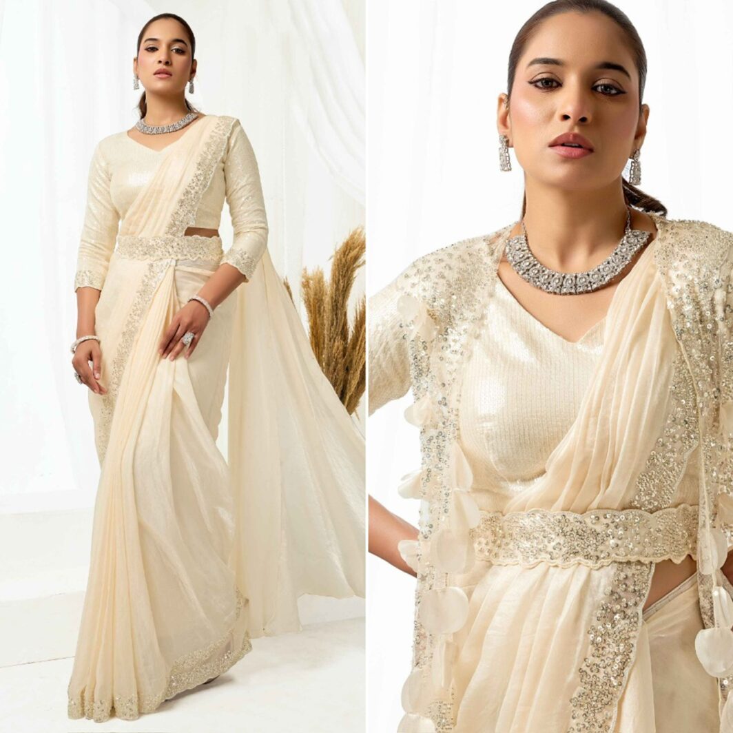 New designer ready to wear satin silk saree with sequin and beads embroidery work