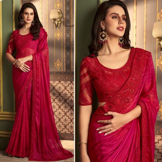 New designer silk saree with heavy embroidery work