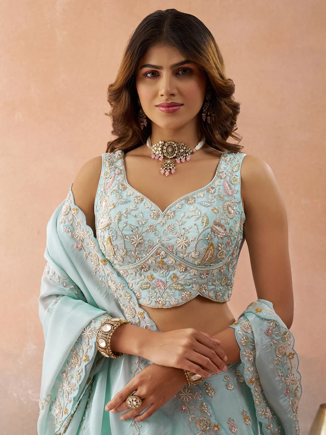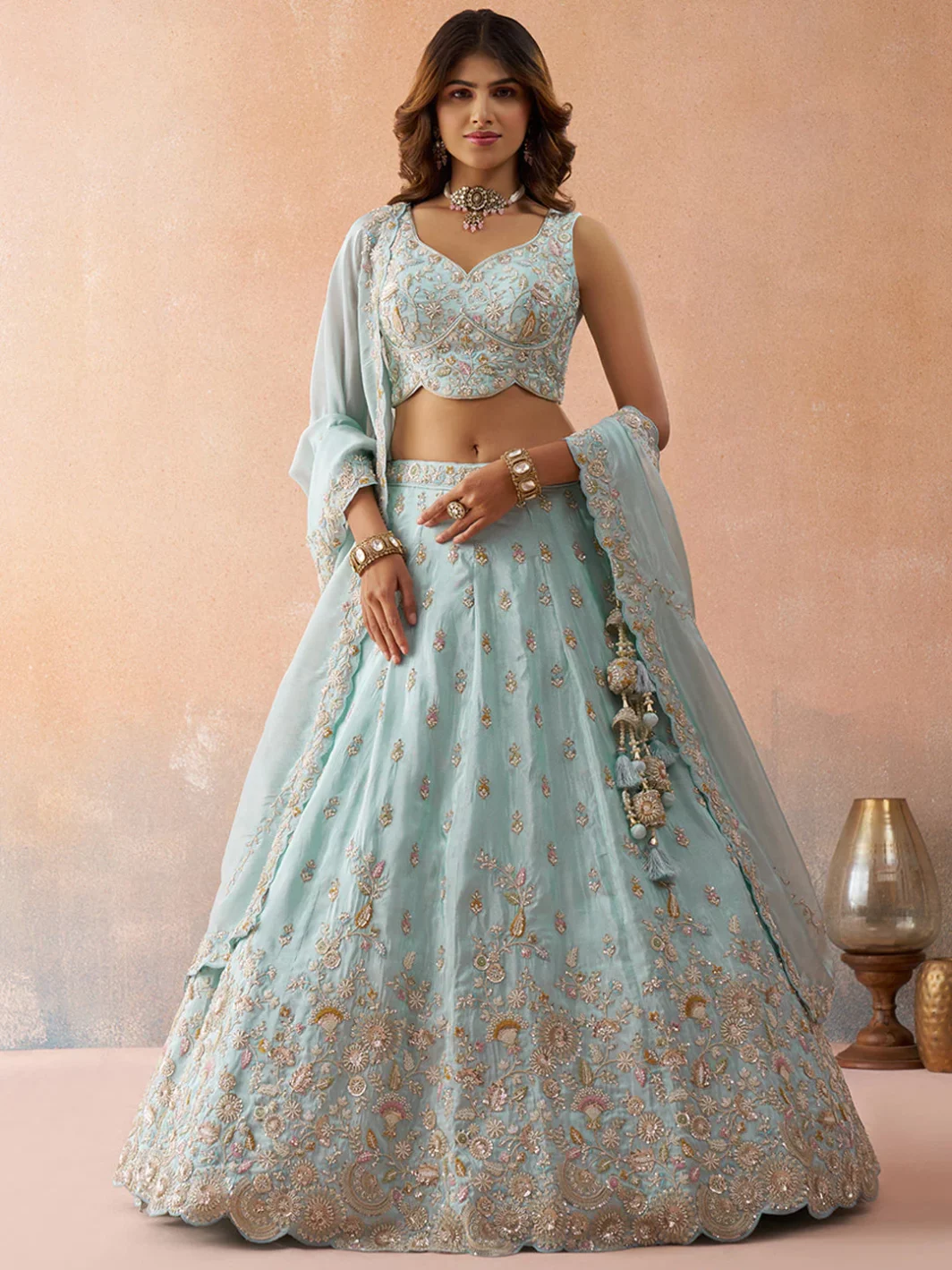 New designer tissue silk lehenga with sequin and bead embroidery work