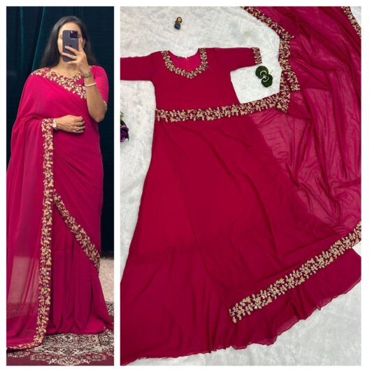 New designer two tone satin silk saree with zarkhan handwork