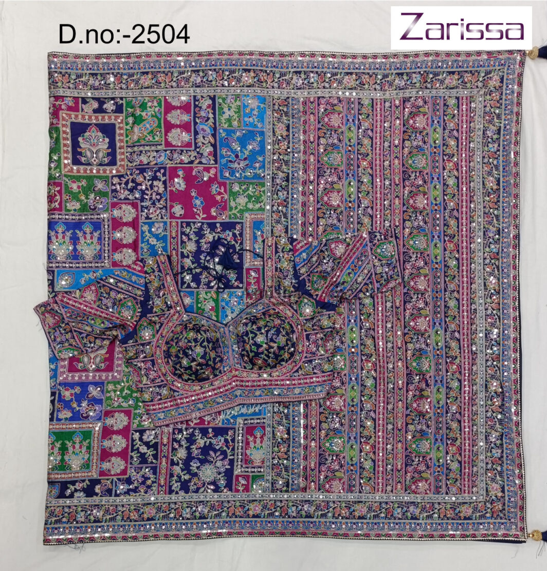 New designer position print satin silk saree with embroidery work