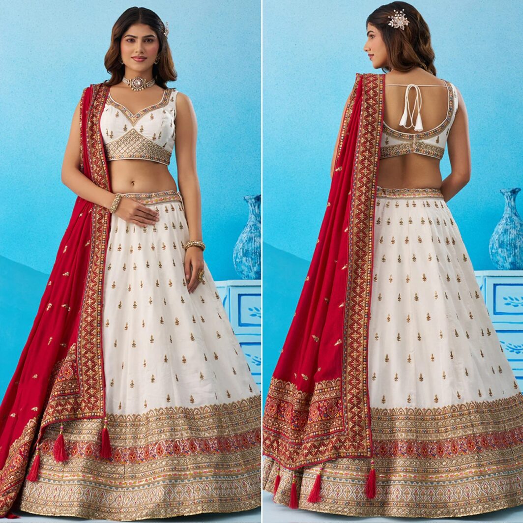WHITE CHINON SILK LEHENGA PREORDER SPECIAL HOP6213WHT