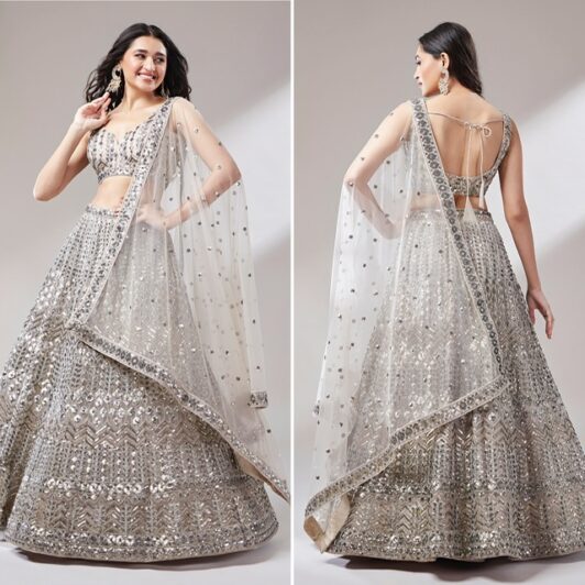 New designer premium range silk lehenga with heavy embroidery work – skirt semi stitched max 42 inches waist and blouse unstitched