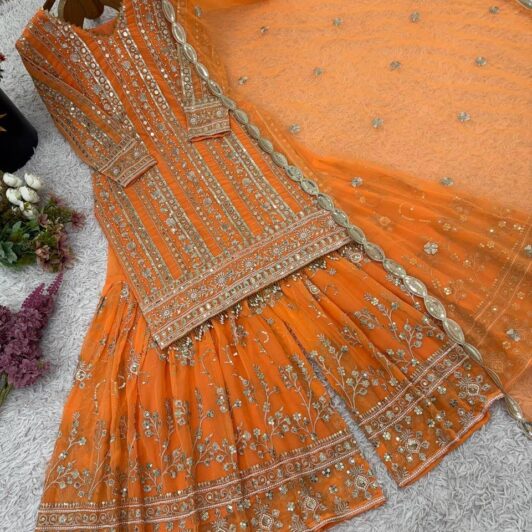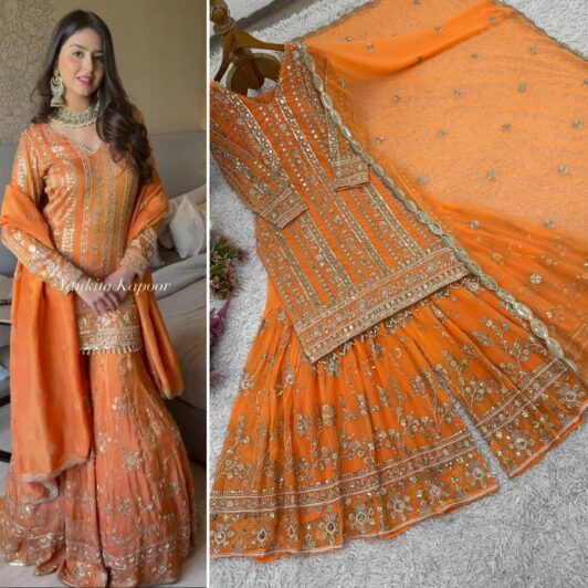 BOLLYWOOD GEORGETTE READY MADE PALAZZO SUIT PREORDER SPECIAL AD1A