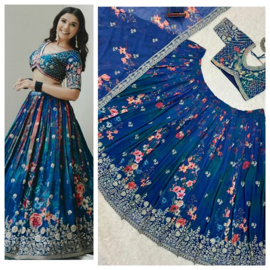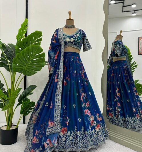 TURQUOISE BLUE GEORGETTE SEQUIN LEHENGA PREORDER SPECIAL HOP6083TB