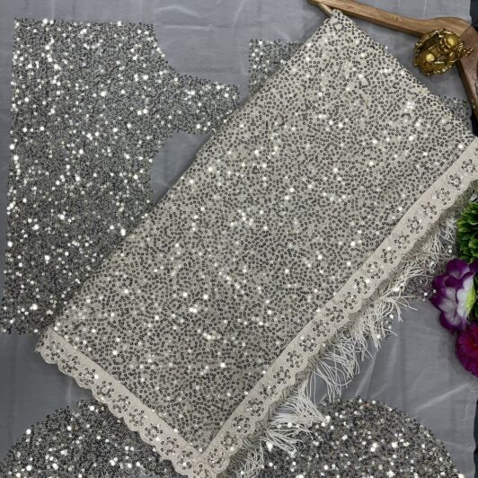 New designer chinnon suits with embroidery work