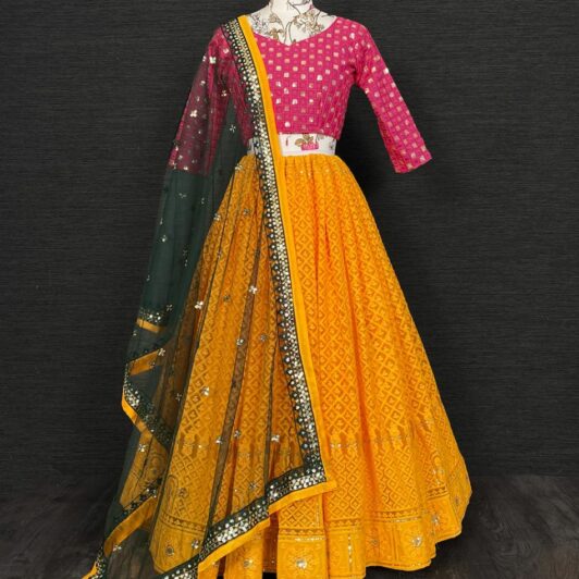 New Bollywood wardrobe team georgette lehenga with thread and paper mirror embroidery